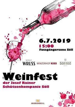 Zum ersten mal veranstaltet die  Schützenkompanie das Weinfest am Samstag, 6. Juli 2019 ab 15:00 Uhr in der Fußgängerzone Söll.